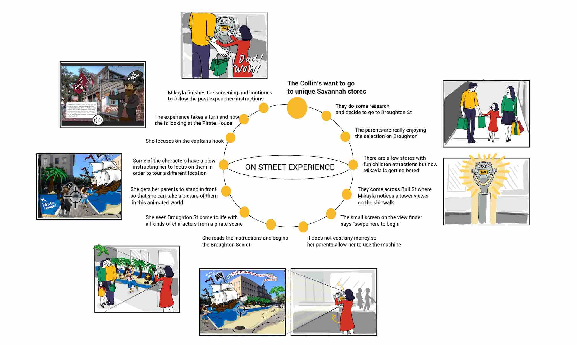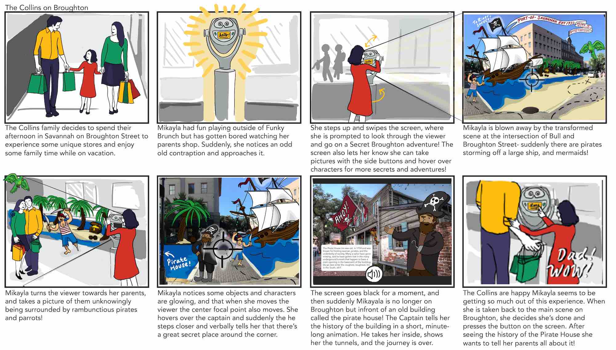 After preforming a SWOT analysis along with continuing to gather and synthesize research on our users, we decided on an interactive viewfinder that would turn Broughton Street into an educational fantasy wonderland that would lead users through Broughton from landmark to landmark and highlight local shops for families to discover.